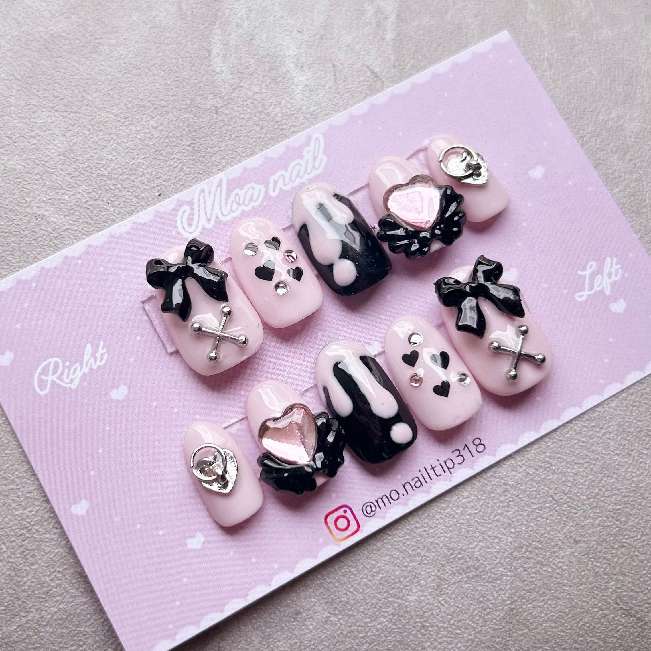 #03 地雷系 量産型 ピンク ブラック ネイルチップ 現品